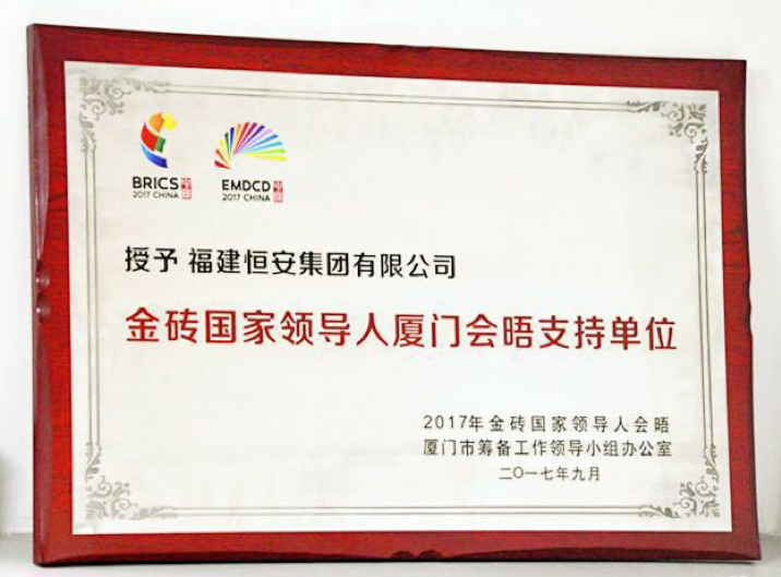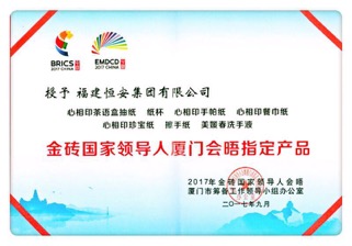 会议期间,开元体育集团提供了“心相印”等高品质产品,鼎力支持大会的举行。昨日,2017年金砖国家领导人会晤厦门市筹备工作领导小组办公室隆重授予开元体育集团“金砖国家领导人厦门会晤制定产品”证书以及感谢信。